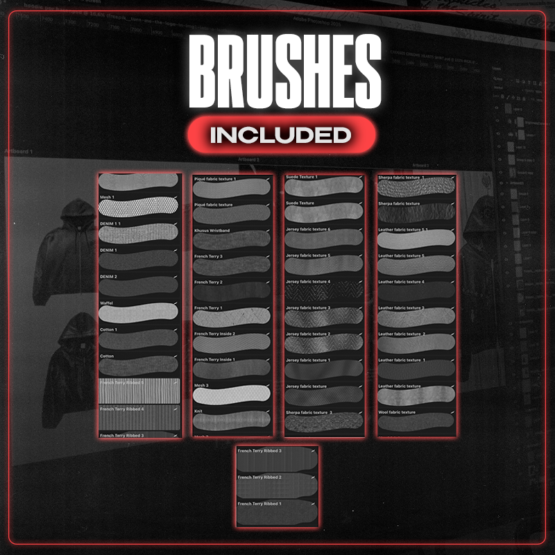 You'll Receive 43 Fabric Brushes ! Including French Terry, Cotton, Denim, Mesh, Knit, Leather, Sherpa & Much more!