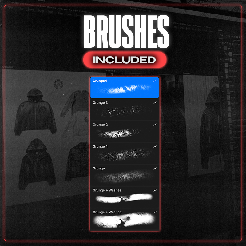 Save time: No need to spend hours crafting the ideal Grunge look for your design. These brushes allow you to create insane designs in minutes.